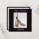 En inbjudan som visar ett fotografi av vackra leopardfärgade festskor och en glittercocktailshaker. Denna inbjudan är helt anpassningsbar och typsnitt/text på framsidan och baksidan kan ändras. Finns även som rektangulär inbjudan