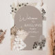 Vacker leopardtryck modern baby shower eller bridal shower välkomstskylt med vita blomsteraccenter och tropiska blad. Har en modern bågdesign och tropiska element.