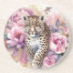 Bilden visar en vacker och detaljerad illustration av en ung leopard omgiven av en mängd livfulla, blommande blommor. Leoparden, med sin karakteristiska fläckiga päls och uttrycksfulla ögon, är placerad i mitten och skapar en slående fokuspunkt. De omgivande blommorna, främst i rosa och lila nyanser, ger kompositionen en mjuk, fantasifull känsla. Bakgrunden innehåller inslag av guld och pastellfärger som förstärker den drömlika och konstnärliga känslan i bilden. Denna fängslande blandning av vilda djur och blommor gör bilden både visuellt tilltalande och unik, perfekt för produkter som syftar till att förmedla en känsla av elegans och naturlig skönhet.