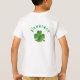 Denna Saint Patricks Day T-shirt design är lämplig för pojkar eller flickor. Den har en dansande leprechaun på framsidan med en klöver och barnets namn på baksidan. För att anpassa, använd menyn "Anpassa". Här kan du ändra teckensnittsstil och färg. Frasen "Låt buset börja" kan också ändras för att passa dina egna behov.