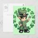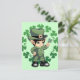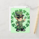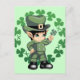 Den här söta St. Patrick-Day-designen har en liten leprechaun som är klädd i grönt med en bakgrund av schampar i en cirkel.