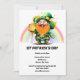 En roligt och en modern generativ innehåll-design av den irländska folklore-lf, leprechaun som står framför en regnbåge som verkar vara glödande. Han håller en kopp i guld uppe i sin höger hand och ler gärna. Han har en stor grönt som är brimerad, och pekar på att på den står faux guld och byxor kostym alla mot en vit bakgrund som har redigerbara svarta textmallar för din anpassningsbar. I inbjudan kan ni sitta här och fira grönten Liffy på St patrick's day, den irländska festen på Irland eller för några av de evenemang eller party som ni kanske är värd för.