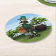 3D digital återgivning av en leprechaun som står nära en kruka av guld, ett svamprum och en schampsten. St patricks day av perfekt