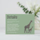 Dessa afrikanska safari design bröllopsdetaljkort är perfekta för alla par som planerar en rustik bröllopsfirande. Med en unik ler giraff design som säkert kommer att imponera på dina gäster. Det perfekta infogningskortet för alla safari-tema fester, inklusive; brud shower, förlovningar, bröllops shower, födelsedagsfester och mycket, mycket mer.