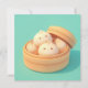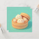 Denna hjärta-smältande design visar tre otroligt söta ångkokta dumplings med enkla, glada ansikten och mjuka rosiga kinder. Återgivna i en högkvalitativ 3D-lerstil har dumplingarna en slät, matta degig textur och är grupperade tillsammans i en ljusbrun bambukorg för ångkokning. Den öppna locket på ångaren vilar bakom dumplingarna, vilket antyder en färsk och varm måltid som just är klar att njutas. Mot en ren, solid teal bakgrund skapar den minimalistiska och "kawaii"-estetiken en charmig matscen som är perfekt för alla som älskar dim sum, asiatisk mat eller fantasifull karaktärskonst. Detta glada dumplings-kort är ett underbart val för att skicka en "tänker på dig"-hälsning eller en lekfull hälsning till din favorit-matsällskap. Du kanske väljer att använda detta söta matkort för en brunch-inbjudan eller för att fira en rolig mat-relaterad milstolpe med dina familjemedlemmar. Det gör också en värdefull dekorativ pjäs för en kökvägg eller ett ljust tillägg till en mat-tematisk scrapbook som en liten symbol för lycka. Denna mång