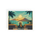 Bring the beauty of the Saintes Islands in Guadeloupe into your home with this vintage retro travel poster. Inspired by classic mid-century postcards, the artwork features the iconic Fort Napoléon cannon overlooking the bay, with sailboats, palm trees, and a stunning Caribbean sunset in the background.