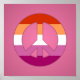 Pink poster with a peace symbol in colors of the lesbian pride flag; LGBT design