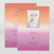 Lesbian wedding menu for two brides featuring the lesbian pride flag gradient—soft pink blending to warm orange—with photo. Displays your wedding photo with menu sections for appetizers, mains, and desserts. The gradient background highlights the entire menu and ties in beautifully with the rest of the collection, creating a cohesive look throughout your wedding. Your names and wedding date appear in elegant script. Perfect for two brides who want to present their reception menu with style while reflecting their love and pride. All text elements are fully editable and ready to personalize with your menu selections. For customization support, please email: remidevandesigns@gmail.com LoveOutLoudStudio©.