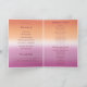 Lesbian wedding program for two brides featuring the lesbian pride flag gradient—soft pink blending to warm orange—applied throughout for a cohesive look. The front displays "Welcome to the Wedding of" and your names in elegant script overlay. The inside shows ceremony order, a thank you message, and the full wedding party. The back features your photo with customizable tagline like "Forever after..." The warm gradient colors serve as background to all panels for a decisively cohesive look and feel. Perfect for two brides who want to guide guests through their ceremony with a program that reflects their love and pride. All text elements are fully editable and ready to personalize. For customization support, please email: remidevandesigns@gmail.com LoveOutLoudStudio©.