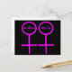 Det här vackra vykortet är designat för lesbiskar. Den har två rosa kvinnliga symboler som står sida vid sida. Bakgrunden är svart och det finns rosa av anpassade i var och en av symbolerna som ska placeras i namn.