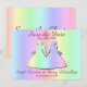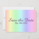 Två brudar håller hand på detta färgglada Spara Datum för-inbjudningskort för ett lesbiskt bröllop. Deras utseende, och bakgrunden, är regnbågen av Gay Pride i pastellfärger. Varsko din familj och vänner att de kanske ska rensa sin kalender för din stora dag.