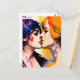 Lesbiska älskare kysser vykort