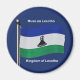Kungariket Lesothos viftande flagga mot mörk blått bakgrund.