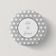 Gray background with white polka dots... white center circle with dark gray accents and gray lettering... reads ... "Let It Snow"...