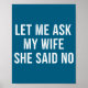 Let Me Ask My Wife She Said No Funny Husband Poster