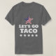 Lustigt anti-Trump-skjorta med "Let's Go Taco - Trump Always Chickens Out" i fetstilt tryckt vitt teckensnitt och patriotisk design.