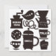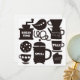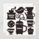 Platta anteckningskortsnummer LET'S MEET FOR COFFEE I designade olika föremål och ord som har samband med kaffe
