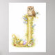 Letter J Gold Spring Nature Monogram Owl Kids Poster