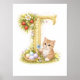 Letter T Gold Spring Nature Monogram Kitten Kids Poster