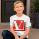 White letter v on a red background. This design looks really effective on this Boys T-Shirt