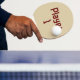 Lettering on a Ping Pong Paddle. Suggested: beige base with red-black script.