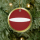 Båda sidor av denna dekoration präglar Lettlands flagga i en cirkel med en gyllene fälg. Enkel lettisk dekoration för ditt hem.