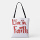 Låt din tro skina med vår Live in Faith tote väska - en perfekt blandning av funktionalitet och inspiration. Craftad från sturdy.