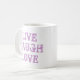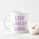 Lev la leva kaffemugg för vänner och familj. Inspirerande citat med vintagebokstäver. Söt presentidé till mamma på mors dag. Teal / turkos och rosa / lila färger.