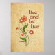 "Lev och låt leva"-elaken bör vi leva det liv vi väljer och låta andra göra samma sak. Används i återställnings- och 12-stegsprogram som t.ex. Alcoholics Anonymous. Lagning, behandling, hälsa, beroende - Text: "Live and Let Live" / Design: blommigt för persikor och grönt.
