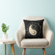 Svart och guld celestial sol och måne som lyder: Levande vid sol kärlek vid måne i ett handskrivet typsnitt. Utformningen upprepas på båda sidor om kudden.