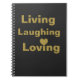 Den inspirerande bärbara datorn "Living, Laughing and Loving" och guld spiral. Den svarta bakgrunden färg kan ändras av kunden. celeste@khoncepts.com