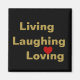 "Living, Laughing and Loving", svart och guld. Den svarta bakgrunden färg kan ändras av kunden. Det röda hjärtat ligger framför hjärtat i guld. Du kan välja vilken som ska behålla i designen. celeste@khoncepts.com
