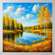 Färgrik höstscen med livfulla gyllene träd under en klar blå himmel, som visar upp fantastisk naturlig skönhet och en fridfull stig som leder in i skogen.
