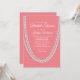 Långa pärlsträngar och vittyp från finare, som på en levande korallbakgrund dekorerar detta söt Inbjudningskort för möhippan, skapar perfekten för elegant, klassisk eller vintage 1920-inspirerad party. Om du behöver ytterligare objekt för evenemanget kan du kontakta oss på prettyfancyinvites@gmail.com med din förfrågan.