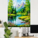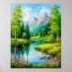 Levande landskap med berg, flodsceneri poster