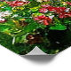 En hisnande naturlig panoramavy med berg, en lugn flod, blomstrande träd och färgrika vilda blommor under en livfull himmel, som förkroppsligar skönheten och lugnet i en orörd naturlig miljö.