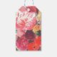 En del av en samling som presenterar en levande bukett i akvarell med en mestadels varm färgpalett av röd, vinröd, rosa, gul och blå.