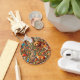 En livlig skogsillustration som visar olika djur som en räv och björn, fåglar, svampar och blommande element i en dynamisk komposition.