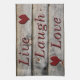 Skratta, är bör kärlek den viktiga ord som bor by i liv och, finnas i everybodys hem, levande. Denna särskilda design skapades av den Debbie ömt ställe av Debs idérik bilder. Bakgrunden är av denna avbildar är sidan av en ladugård i krona pekar, NY. Kontrollera ut henne websiten på att se fotografi av Debbie: www.debscreativeimages.com