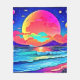 En hypnotisk digital konst som visar en levande solnedgång över ett lugnt hav, med en stor, färgrik måne och avlägsna planeter (Denna design är gjord med AI). Beställ idag och omfamna glädjen av shopping!