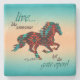 Det här är ett unikt "Ett av ett slag", inspirationerande Underlägg i sydväst. Den har en Galloping Southwest Horse i Turquise, Orange och Black på turkos och Orange Sunset Background och inspirationsofferten......Live som någon Lämnat Grind Open! Original Art Design by Artist Kerry Miller.