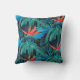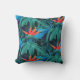 Dubbelsidig kastkudde med levande tropiska blad och orangea blommor på en mörk bakgrund. Designen förmedlar en livlig, exotisk känsla.