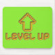 Denna livfulla 8-bit ”Level Up”-pixelartmusmatta på neongrön bakgrund ger omedelbart personlighet åt din arbetsplats.