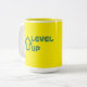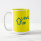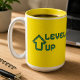 Start your day with a definitive "Level Up"! This high-quality ceramic mug features a vibrant 8-bit green pixel art design on a clean white exterior, perfectly complemented by a striking neon yellow interior.