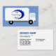 En enkel teckning av en leverans lastbil står på kortets framsida. Din logotyp placeras på sidan av lådan lastbil som om den vore målad där. Ditt företags-namn, företagets slogan, namn, titel och mobila nummer skrivs ut på kortets baksida. Lastbil är vitt med blå och svart text. Lastbil dras i ett minimalistiskt, nästan tecknad stil. Bakom lastbil finns en fast ljusblå bakgrund som följer med den blå texten. Bra för följande typer av företag: lastning, leverans, transport, logistik, flytta, transport och alla andra företag som användor ett stort lastbil.
