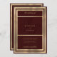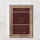 En sofistikerad elegant guld och burgundi monogram initialer snyggt tema minimalistiska geometriska lyxbröllopsinbjudningar. Den här minimalistiska utformningen har en underbar, enkel geometrisk utformning av guld gräns på burgundisk bakgrund. Anpassa den här designen med information om meddelande och personlig. Alla designer skrivs ut.