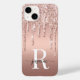 Girly Elegant Luxury Glam Ro Guld Glitter Dripping Metallic Monogram Namn Script Anpassningsbar Personlig iphone case. Den här designen som innehåller ditt första namn i ett söt-handskrivet stil-träff med svan namnteckning typografi med Inledande på metallfolie av typen rosa ros guld, med glam gnistra glitter droppar gräns. Dessa är lätta att anpassa. Underbar snyggt feminin present till födelsedag, söt 16 födelsedagsfester, mor för studentfest, och det är för flickan som kärlek unika gnistra snyggt sak.