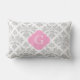 Lg Grå Vit Blommig Damask #3 Rosa Monogram-etikett Lumbarkudde