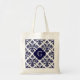 Lg Navy Blu Wht Damask #3 Navy Quatrefoil Monogram Tygkasse