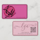 Utmärkt fukshiafront med logotyp, alias och namn-grändad, lätt lilac med dammig ro ram, monogram för företag, med e-post och länk.
